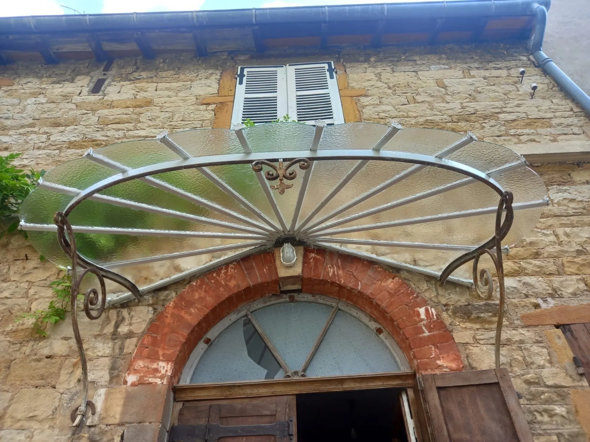 Changement de vitrages sur une marquise ancienne à Cogny près de Villefranche sur Saône.