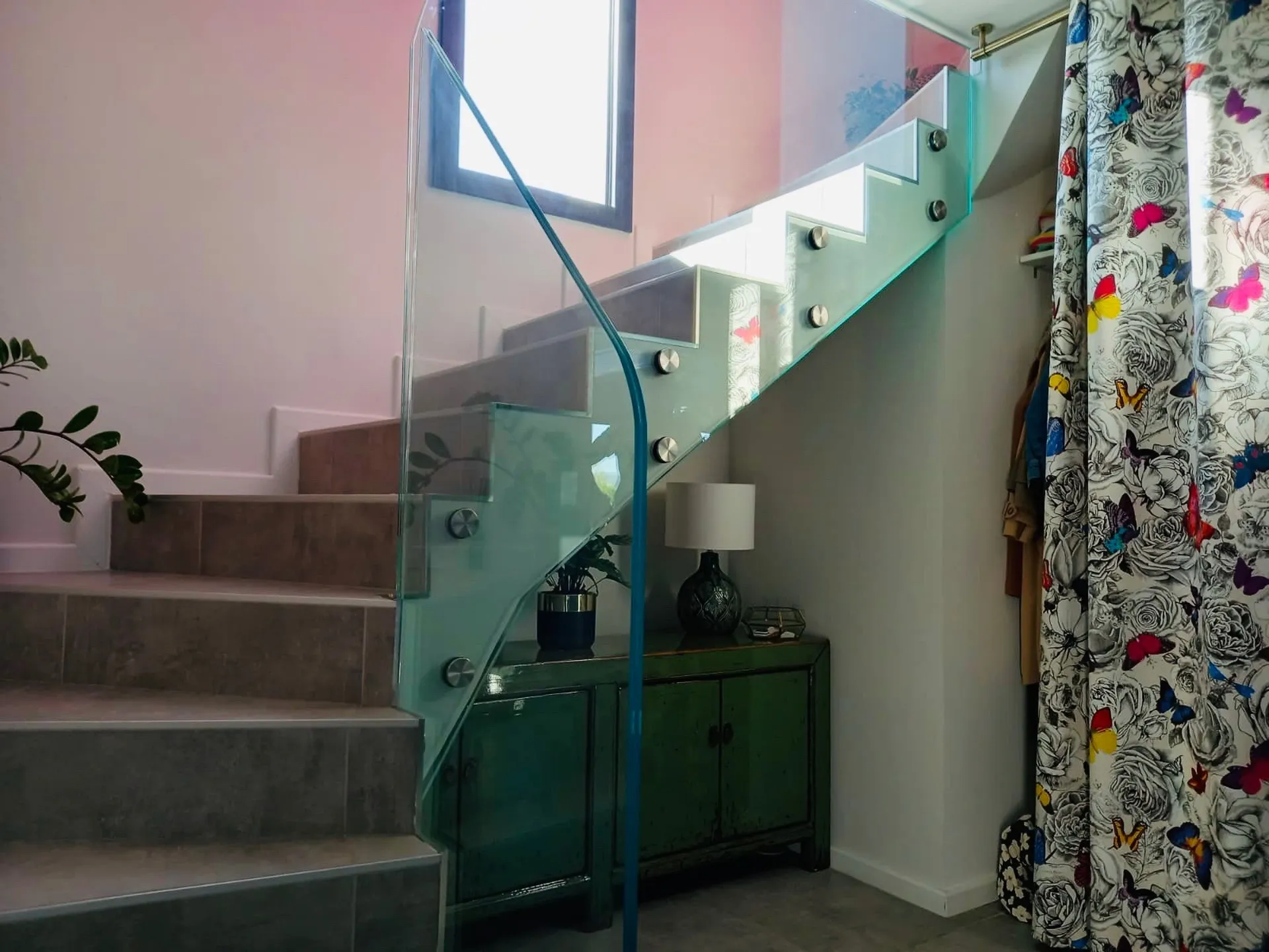 Le côté design du verre transparent, embellit votre intérieur tout en sécurisant l’escalier pour vos enfants.