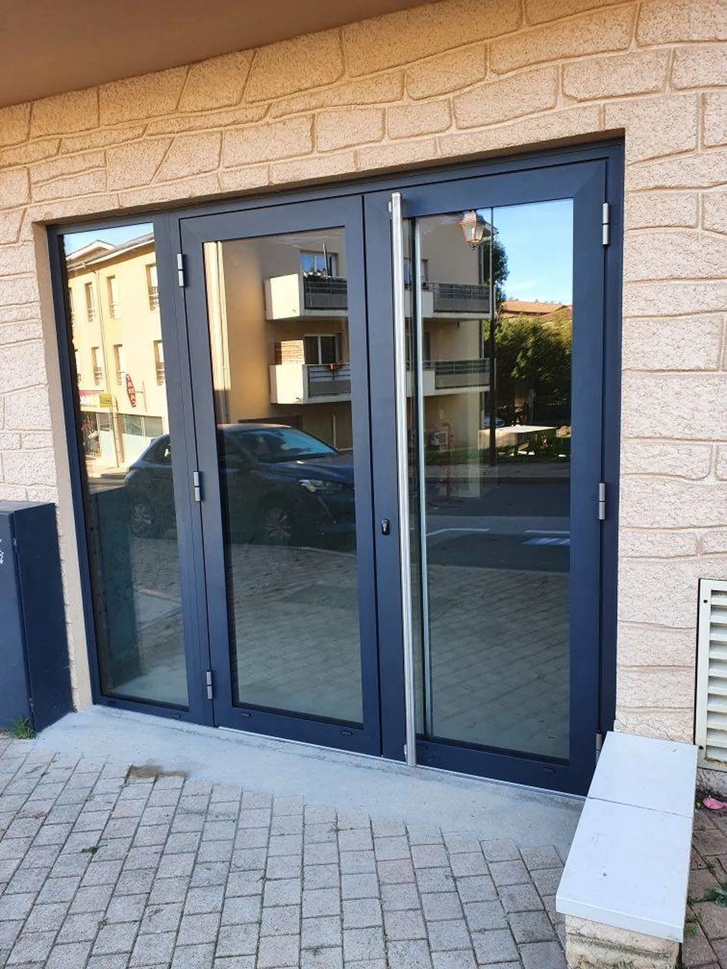 Pose par nos propres poseurs d'une porte ouverture extérieure grand trafic avec bâton de maréchal, soit un bâton de tirage intérieur et extérieur sur Macon. ces portes souvent destinées au salle des fêtes ou dans le tertiaire, bâtiments industriel ou entrée de bureau. la porte grand trafic est généralement équipé d'une serrure rouleau et d'un ferme porte et de bâton de maréchal. des charnières renforcées, un seuil alu pour un grand passage et une forte utilisation. la pose a Macon de cette porte et de ses baies vitrées se sont formidablement bien passé, un client de Macon ravi, pour démarrer son activité. le bâton de maréchal est une poignée de tirage qui peut être en alu ou de la couleur de la menuiserie. peut s'adapter sur une porte d'entrée traditionnelle ou contemporaine. Vous souhaitez nous contactez par mail : contact@avm69.fr ou nous rendre visite en suivant cet itinéraire.