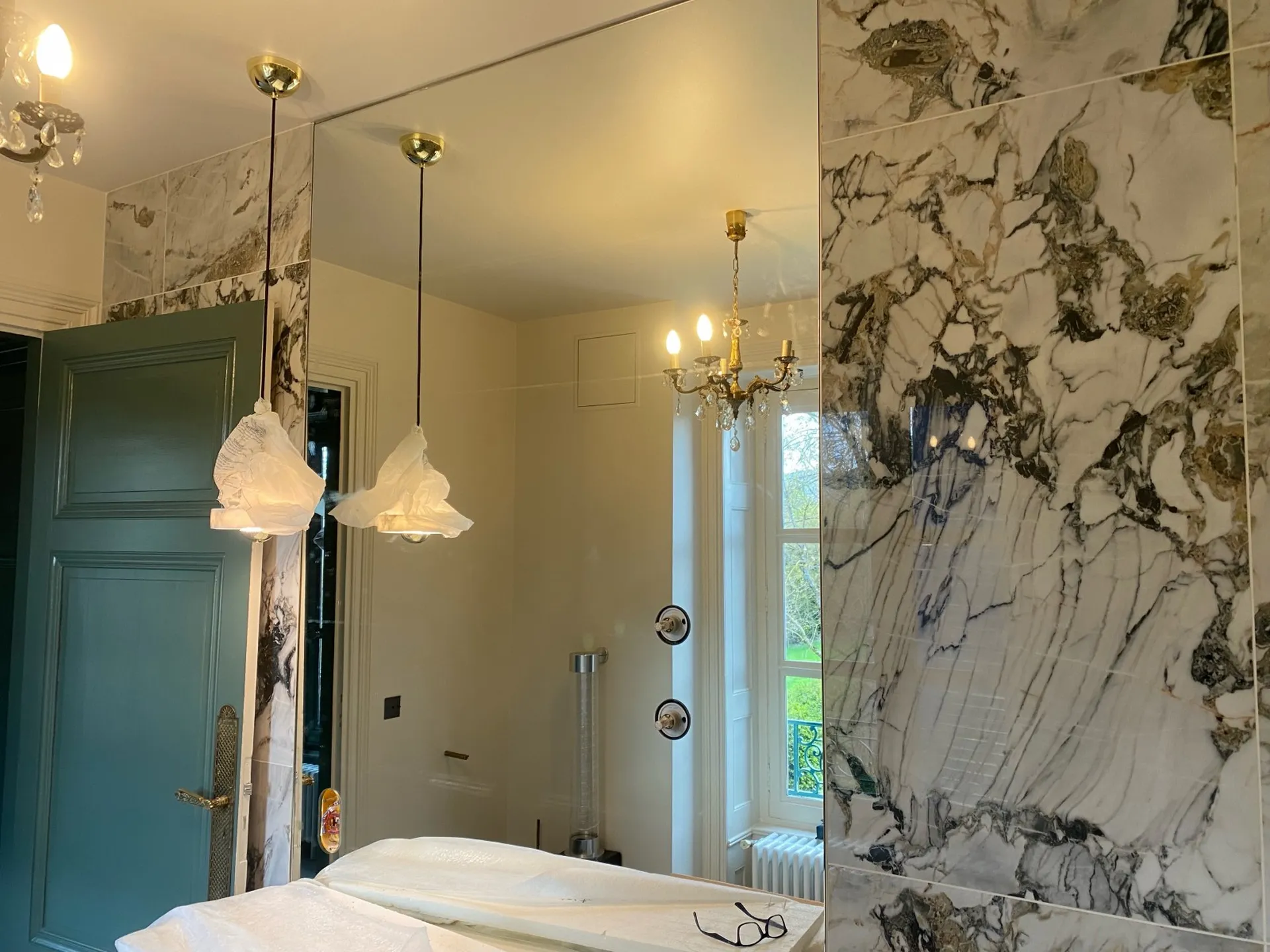 Quel beau château où la société AVM a posé des miroirs vieillis de toute beauté,